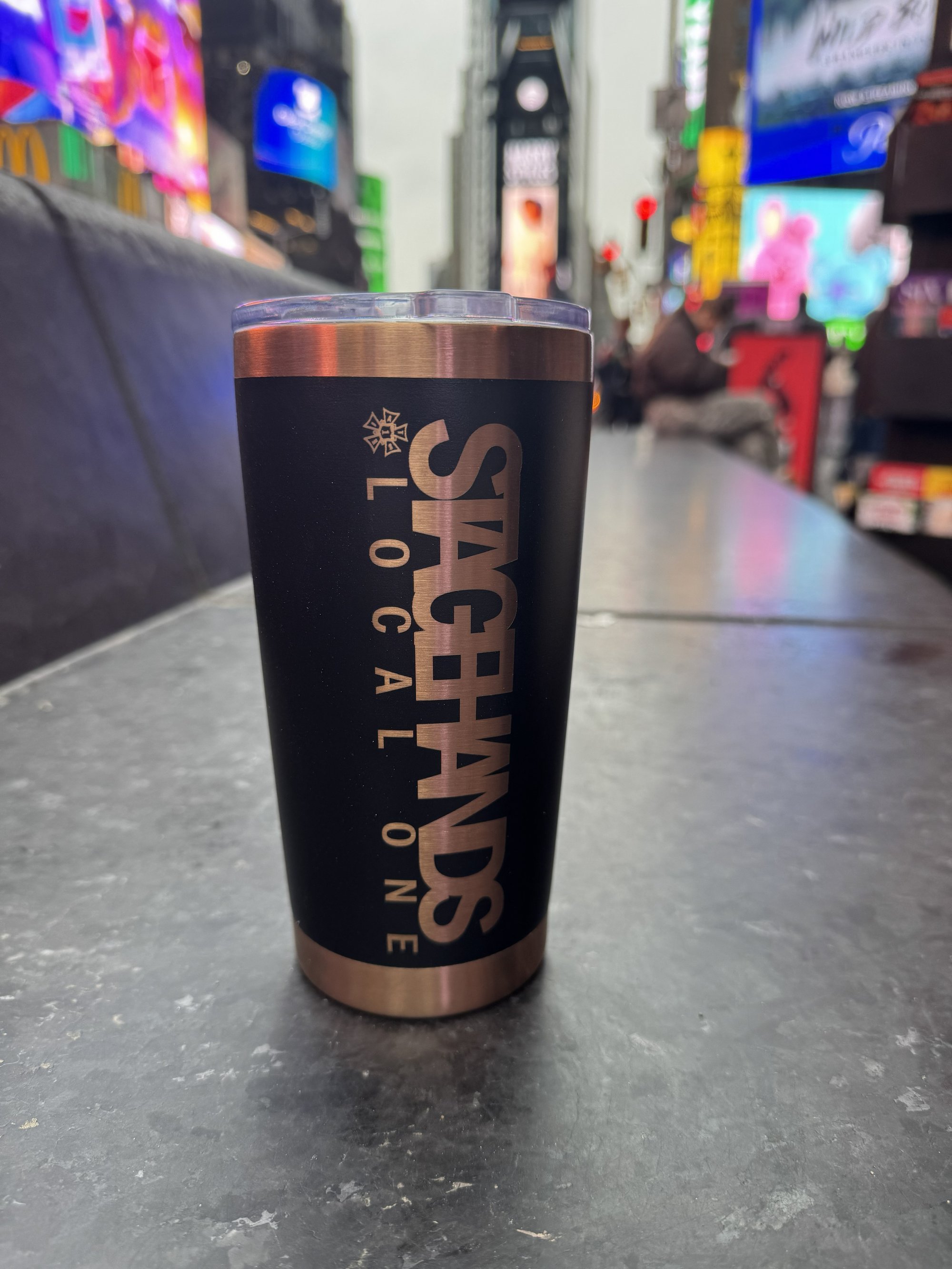 Local ONE w/ Vertical "Stagehands" Design. Tumbler for Hot or Cold.